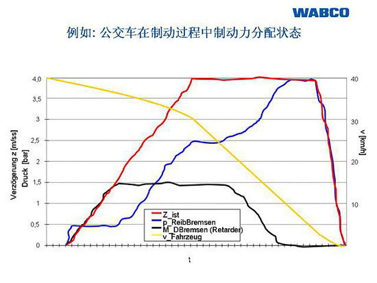 在车辆行驶方面,EBS具有ABS防抱死功能控制,ASR自动牵引力控制功能(包括制动控制功能、发动机扭矩控制功能),DTC拖拽扭矩控制功能(能消除由传动系造成的机械抱死)。